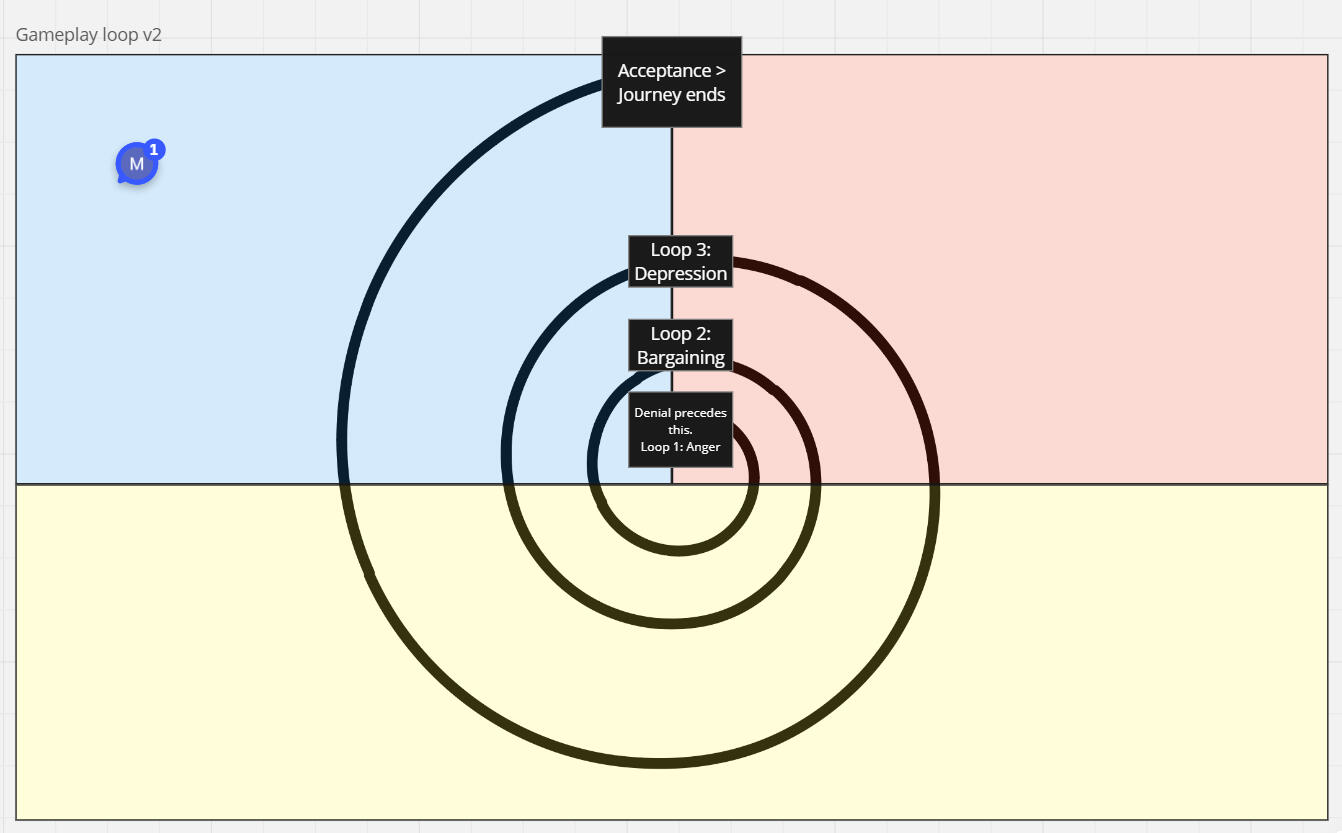 Our creative director ideated the core game loop, which represented the different stages of grief that the characters navigate throughout the game.As designers, we had to ask ourselves--how would this homesick dragonborn navigate the different stages of grief? The narrative designers managed to answer that question, by developing the narrative arc, while I assisted with high-level story consulting and ideation for the characters.