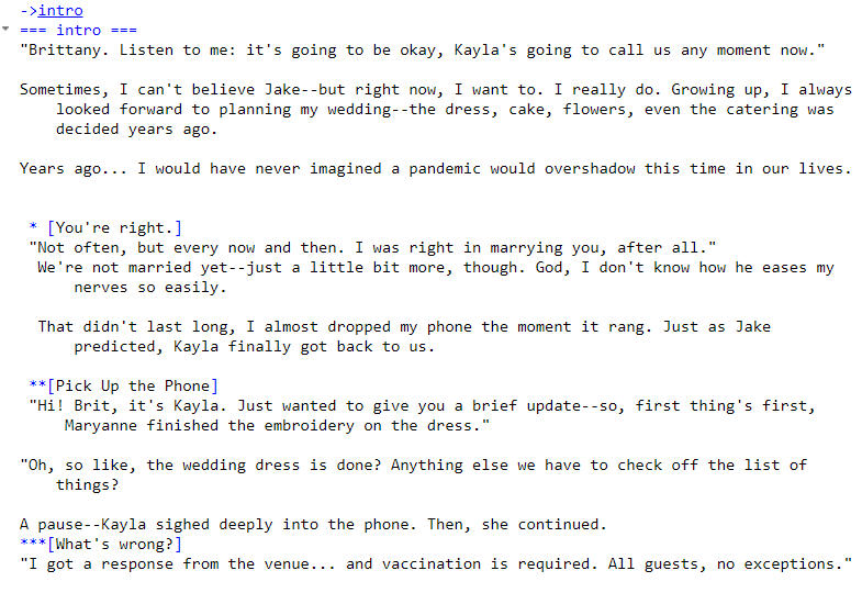 Excerpt in Ink of the Project (Game Available Upon Request)