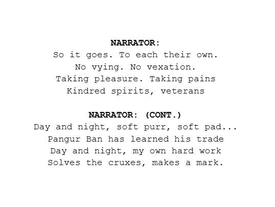 Barks were triggered upon interacting with items in the game, and completing quest goals. The Narrator character was based off of the "monk" character in the original Pangur Ban poem, but we took the creative liberty to adapt the story into that of an Irish nun instead.Voice over direction was provided to the talent, who recited the lines provided in the script.