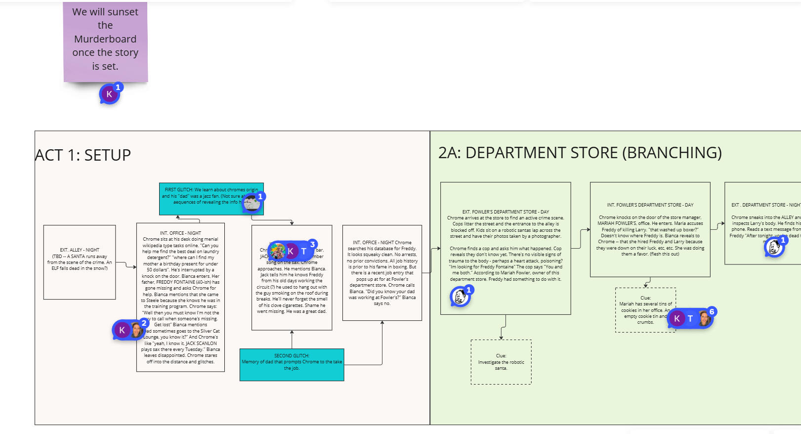 As a creative director, I oversaw the writers' room, brainstorming sessions and delegated tasks to the corresponding departments while under a strict deadline. Above is a sample of our flowcharting of the game's introduction.