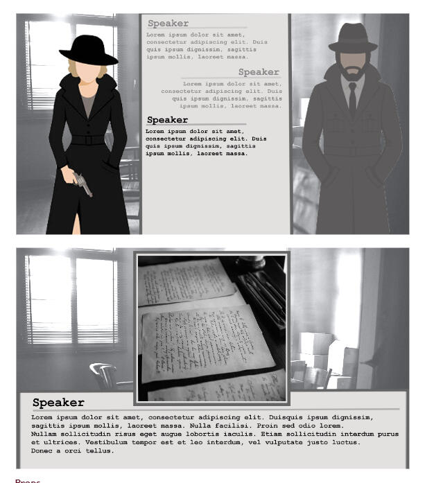 The core game loop started off as the player having to listen to the claims of Maria, whose father had gone missing, and responding to it in three different ways.Depending on the method that the player chose, this would branch into a storyline where their choices had consequences. We intentionally crafted a simple, narrative-driven design to ensure that the team (composed mainly of game writers) could play to their strengths.The three options were:
